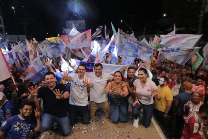 Há 44 dias do primeiro turno das eleições, o candidato à reeleição pelo União Brasil, governador Wilson Lima, realizou seu primeiro ato de campanha no interior do Amazonas nesta sexta-feira, 19 de agosto. Parintins, a 369 quilômetros da capital, foi o município escolhido para receber o comício, que reuniu 10 mil pessoas. A programação contou com carreata seguida de passeata pelas principais ruas do município.