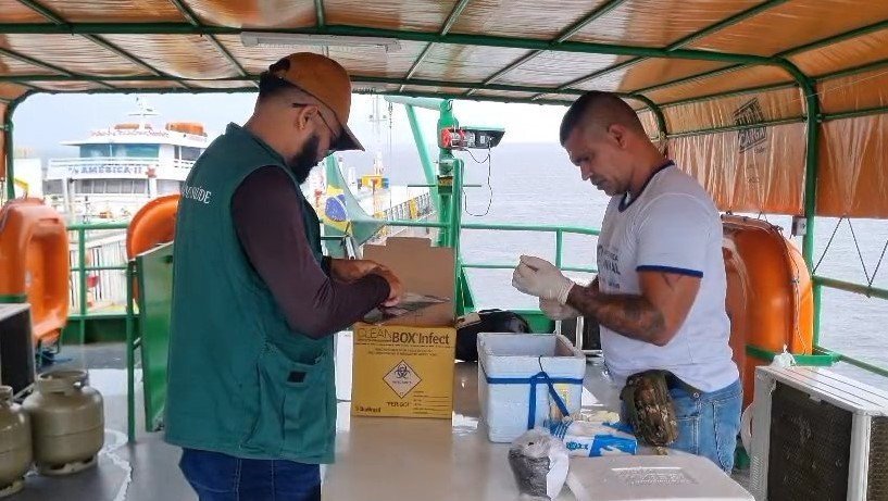 As comunidades da calha do rio Amazonas são as primeiras a receber a equipe de vacinação do CCZ Manaus, formada por dois agentes de zoonoses. Os profissionais vão percorrer a região até o dia 30 de abril, a bordo da Unidade Básica de Saúde Fluvial (UBSF) Dr. Antônio Levino. Ao todo, a Semsa destinou 1.500 doses da vacina antirrábica animal para atender a estratégia nessas localidades.
