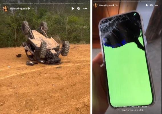 Nas redes sociais, depois do susto passar, ela contou um pouco do que aconteceu quando estava andando com a amiga Aline Crespani. Nos stories do Instagram, Biah Rodrigues compartilhou um vídeo mostrando o carro completamente de ponta cabeça e com algumas partes quebradas.