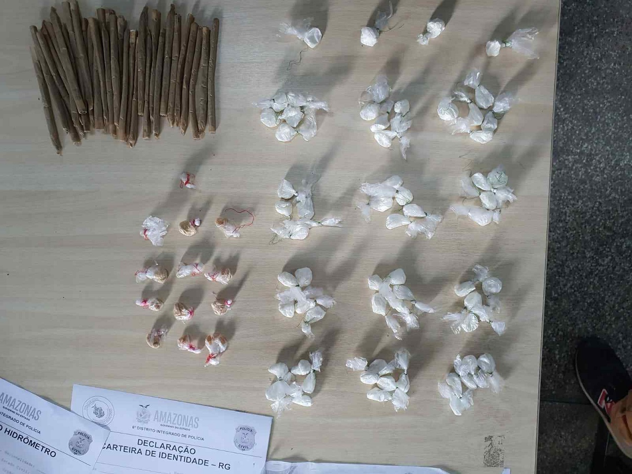 O indivíduo detido foi conduzido, juntamente com o material ilícito apreendido, para o 1º Distrito Integrado de Polícia (DIP), onde foi verificado que ele já tinha passagem policial por furto