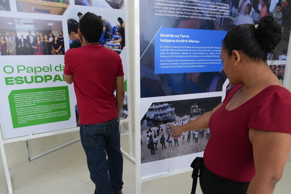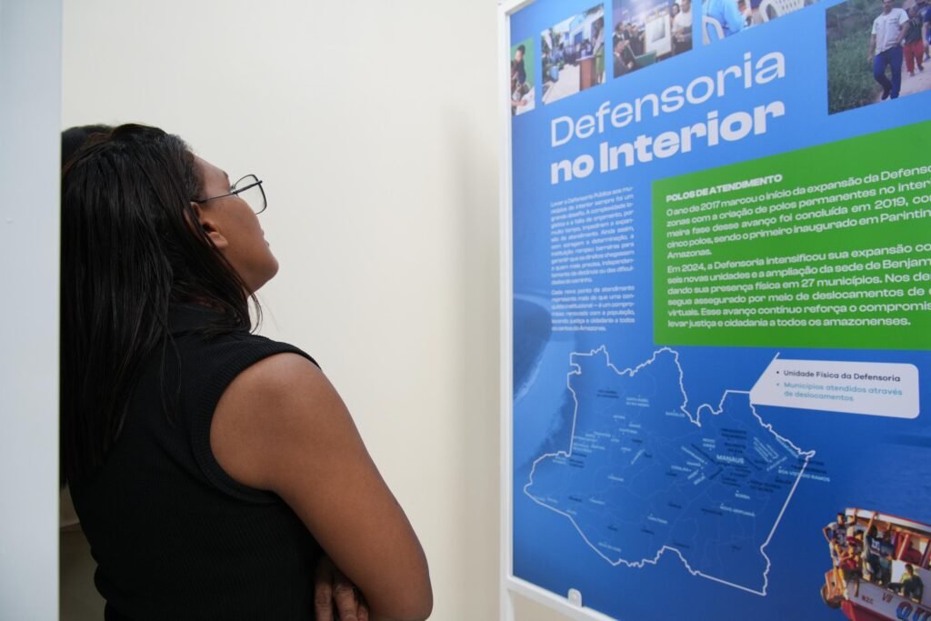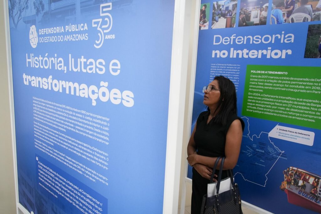 Voltada ao público interno e à população que circula pelo local, a exposição conta com seis totens ilustrativos que conduzem os visitantes por uma linha do tempo da instituição — desde sua fundação, em 1990, até os dias atuais. Ao longo do percurso, é possível compreender o surgimento da DPE-AM, sua missão em defesa das mais vulneráveis e o processo de fortalecimento institucional ao longo das décadas.