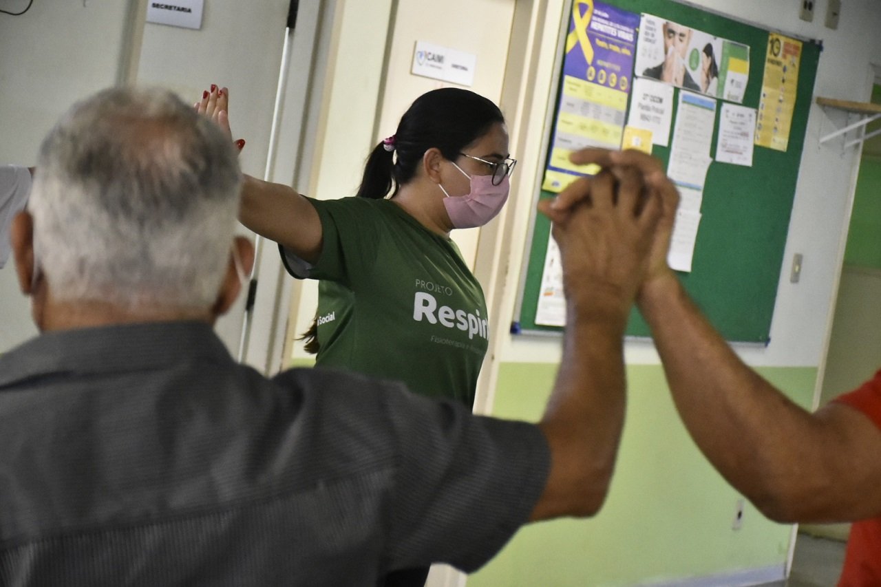 Para celebrar o Dia Mundial da Atividade Física, nesta quarta-feira (06/04), o RespirAR realizou uma ação estratégica voltada para o público da terceira idade no Caimi Dr. André Araújo, no bairro Cidade Nova, zona norte da capital. O projeto do Governo do Amazonas, coordenado pela Fundação Amazonas de Alto Rendimento (Faar) em parceria com Secretaria de Estado de Saúde (SES-AM), recupera pacientes que tiveram sequelas leves ou moderadas da Covid-19, por meio de trabalhos com profissionais de fisioterapia e educação física.