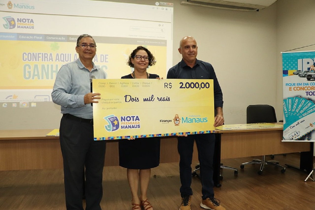 Em janeiro de 2023, a Prefeitura de Manaus sorteará o prêmio especial de R$ 50 mil da campanha Nota Premiada Manaus. Concorrem à premiação extra todos os participantes cadastrados que solicitaram suas Notas Fiscais de Serviços com o CPF registrado ao longo de 2022.
