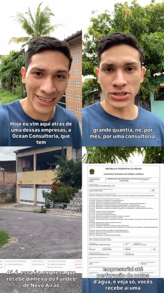Conforme informações disponíveis no Cadastro Nacional da Pessoa Jurídica (CNPJ), a Ocean Consultoria tem como endereço-sede um imóvel residencial localizado na Rua Professora Josefa, nº 38, no bairro Novo Aleixo. O cenário encontrado no local contrasta com o volume de recursos recebidos da Prefeitura, o que reforça suspeitas sobre a regularidade do contrato e a efetiva prestação dos serviços.