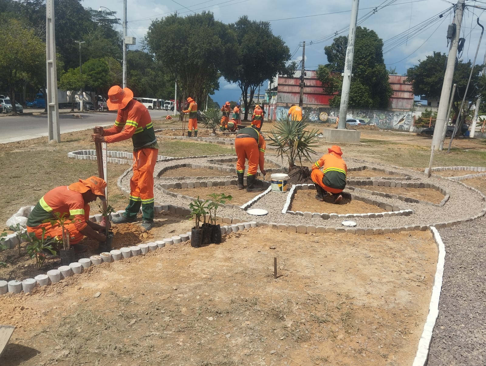 A Prefeitura de Manaus, por meio das equipes de paisagismo da Secretaria Municipal de Limpeza Urbana (Semulsp), está realizando a revitalização completa da rotatória localizada em frente ao Museu da Amazônia (Musa), no bairro Cidade de Deus, zona Norte da capital. A obra, iniciada no último sábado, 26/4, prossegue nesta segunda-feira, 28/4, com a previsão de conclusão até o final de maio.