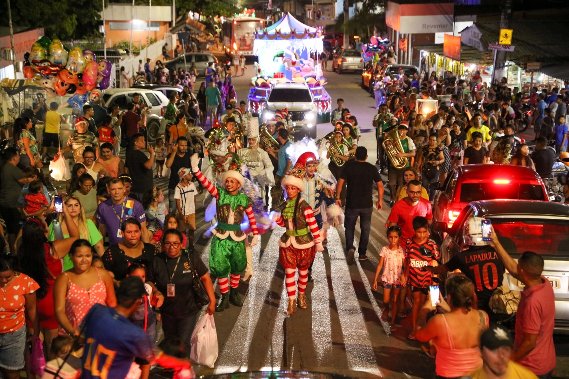 A Prefeitura de Manaus, por meio do Fundo Manaus Solidária (FMS), realizou, na terça-feira, 5/12, mais uma parada natalina. A magia do Natal chegou aos bairros Colônia Antônio Aleixo, Cidadão 9 (conjunto Lula), Castanheira, Novo Reino, São José e Zumbi dos Palmares, na zona Leste da capital amazonense.