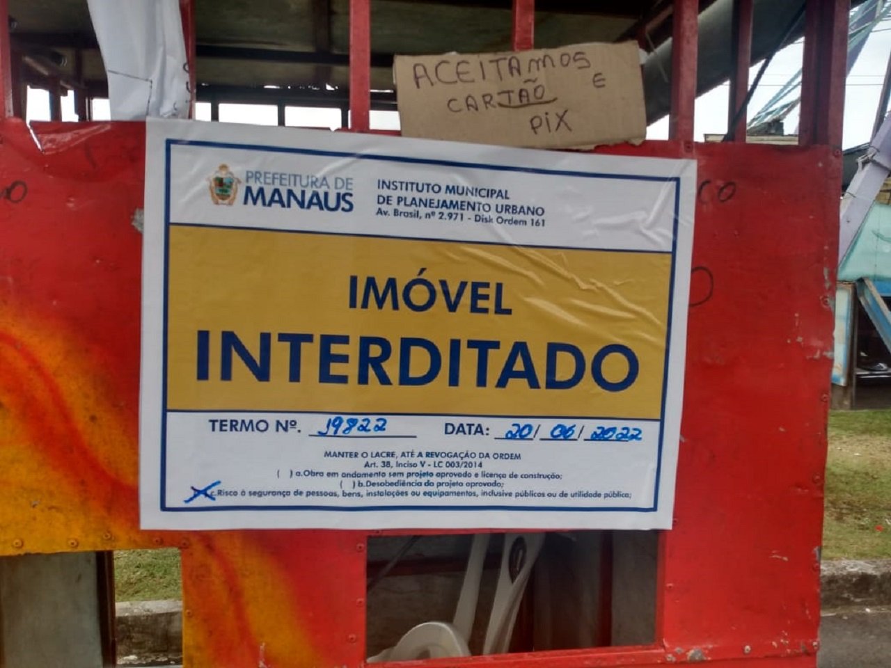 Prefeitura de Manaus, via Instituto Municipal de Planejamento Urbano (Implurb), notificou e interditou um parque de diversões que estava funcionando irregularmente na área externa do shopping Phelippe Daou, na Cidade de Deus, zona Norte.