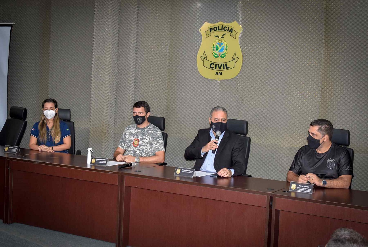 Durante coletiva de imprensa realizada na sede da Delegacia Geral (DG), no bairro Dom Pedro, zona centro-oeste de Manaus, o delegado-geral adjunto Tarson Yuri Soares ressaltou o êxito em mais uma operação deflagrada pela DERCC, e parabenizou o trabalho das equipes coordenadas pelos delegados titulares que deram apoio no desdobramento dos trabalhos policiais.