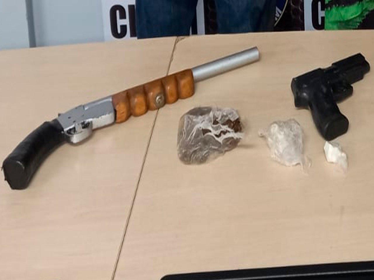 No local, um dos suspeitos, ao avistar os policiais, jogou um objeto, que se tratava de um simulacro de arma de fogo, e entrou na residência. Os militares perseguiram o suspeito e entraram na casa, onde estava outro suspeito, conhecido como chefe da facção na localidade, que estava com arma em punho e tentou se desfazer da espingarda calibre 28, ao ver os policiais.