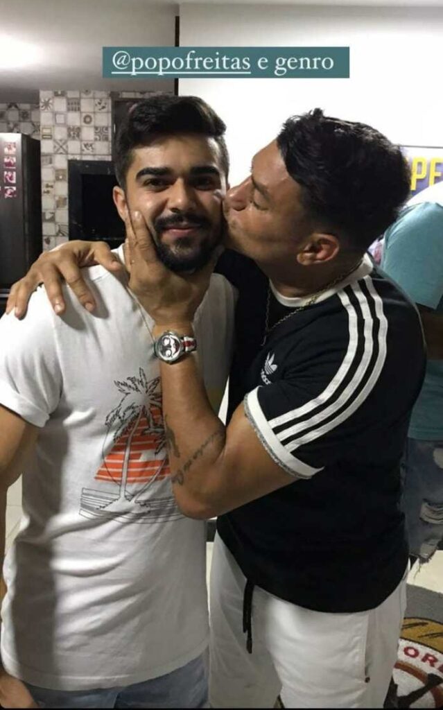 Na legenda de sua postagem em sua conta na plataforma online, o filho do ex-atleta escreveu: “Popó Freitas e o genro”.