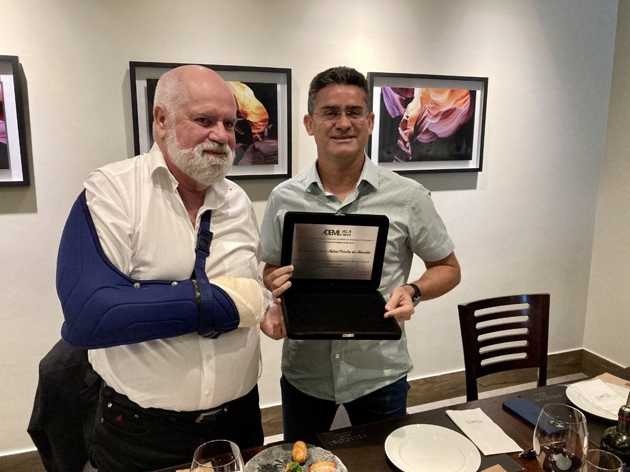 O prefeito de Manaus, David Almeida, recebeu uma placa da Associação das Empresas do Mercado Imobiliário no Estado do Amazonas (Ademi-AM), em homenagem aos serviços prestados à cidade e em gratidão ao desenvolvimento da economia local, durante encontro com empresários do setor imobiliário, nesta quarta-feira, 15/12, em Adrianópolis, zona Centro-Sul.