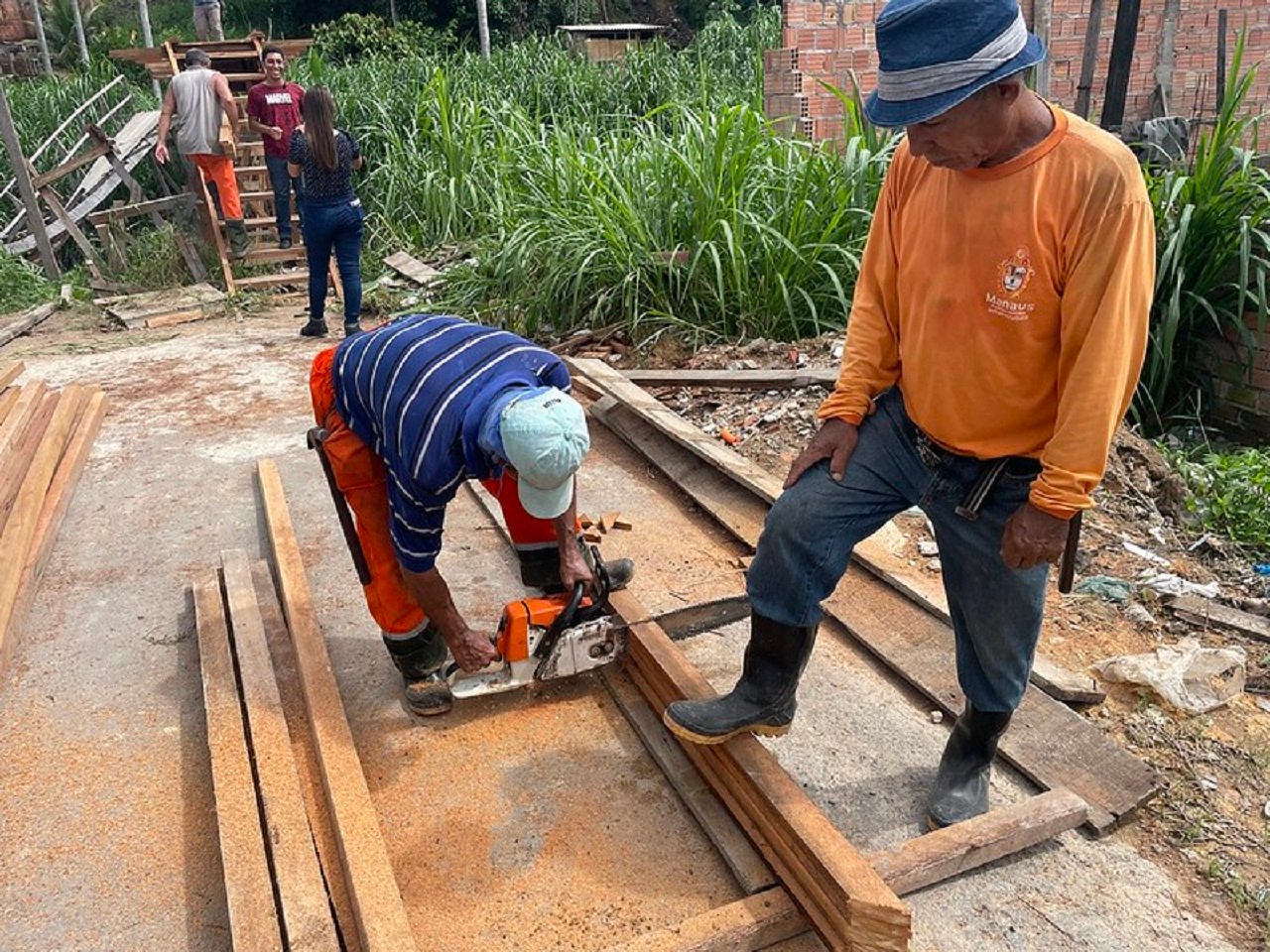 Prefeitura de Manaus, por meio da Secretaria Municipal de Infraestrutura (Seminf), trabalha nesta segunda-feira, 16/1, na conclusão da obra de construção de uma ponte em madeira, com aproximadamente 45 metros de extensão, na rua da Igreja, bairro Colônia Terra Nova, zona Norte da cidade.