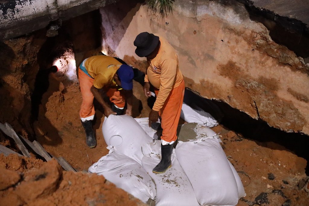 Prefeitura de Manaus, por meio da Secretaria Municipal de Infraestrutura (Seminf), atuou de maneira emergencial, na noite de sábado, 3/5, em uma cratera se formou em um dos principais corredores viários de Manaus, a avenida Constantino Nery, bairro Chapada, zona Centro- Sul, no sentido bairro/Centro. O buraco surgiu devido a um processo de erosão sob o pavimento e contou com a pronta resposta das equipes da Seminf que atuaram de maneira rápida na área para solucionar o problema.