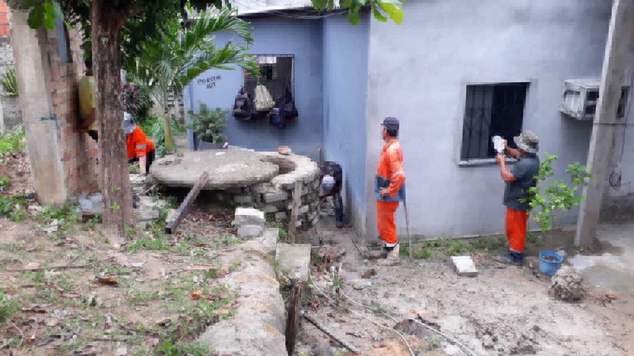 “A situação  é delicada e complexa pelas questões geográficas e a existência de construções irregulares na área, exigindo que todo serviço seja realizado de forma manual. Essa tubulação está comprometida pelo acúmulo de muito lixo doméstico, associado à falta de manutenção. A rede de drenagem não recebia reparos há uns 10 anos, e a caixa coletora estava totalmente destruída. Nossas equipes foram acionadas de forma emergencial e aqui estamos realizando a limpeza, manutenção da rede de drenagem e reconstrução da caixa coletora na área”, explicou Érico.
