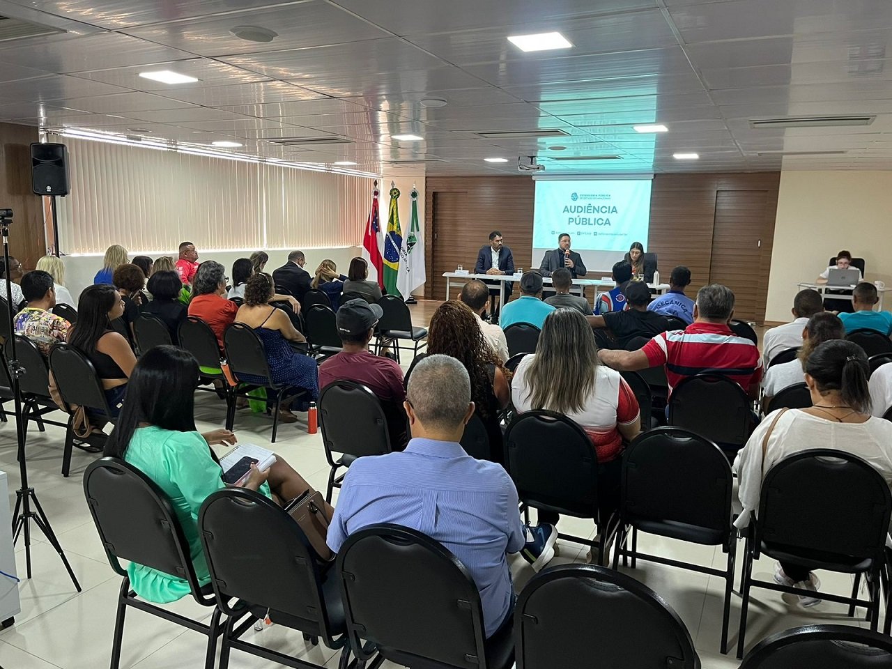 Prefeitura de Manaus, por meio da Secretaria Municipal do Trabalho, Empreendedorismo e Inovação (Semtepi), participou nesta segunda-feira, 27/3, da Audiência Pública promovida pela Defensoria Pública do Estado do Amazonas (DPE), para discutir políticas públicas para pessoas em situação de rua na capital. A reunião foi realizada na sede do órgão, localizada na avenida André Araújo, no bairro Aleixo, zona Centro-Sul.