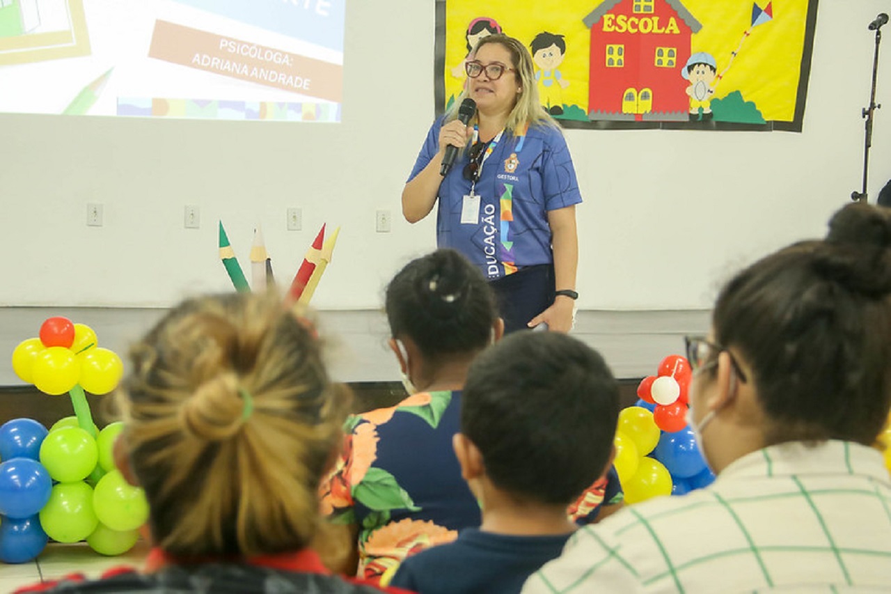 A Prefeitura de Manaus realizou, nesta quarta-feira, 6/4, a abertura do programa “Família na Escola é 10!”, executado pela Secretaria Municipal de Educação (Semed). O evento, que foi organizado pelo Centro Municipal de Atendimento Sociopsicopedagógico (Cemasp) Norte, ocorreu no auditório da escola municipal Professor Fernando Timóteo da Silva, no bairro Manoa, zona Norte. A unidade vai atender 51 estudantes do 3º ano do ensino fundamental, nos turnos matutino e vespertino, que apresentam dificuldades no processo de ensino e aprendizagem na leitura e escrita.