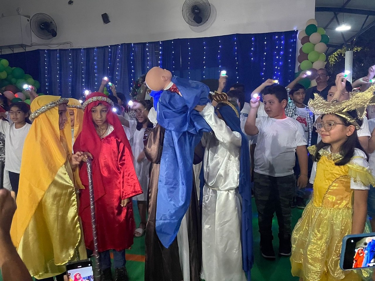 Com a temática “Um presente de Natal”, a Prefeitura de Manaus realizou, na terça-feira, 6/12, a tradicional “Cantata de Natal” da escola municipal Sérgio Alfredo Pessoa Figueiredo, localizada no bairro Presidente Vargas, zona Sul. A apresentação envolveu 243 estudantes do 1° ao 5° ano do ensino fundamental.