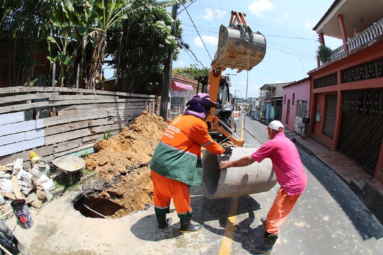 Prefeitura de Manaus trabalha na troca de tubulação de rede drenagem no Coroado