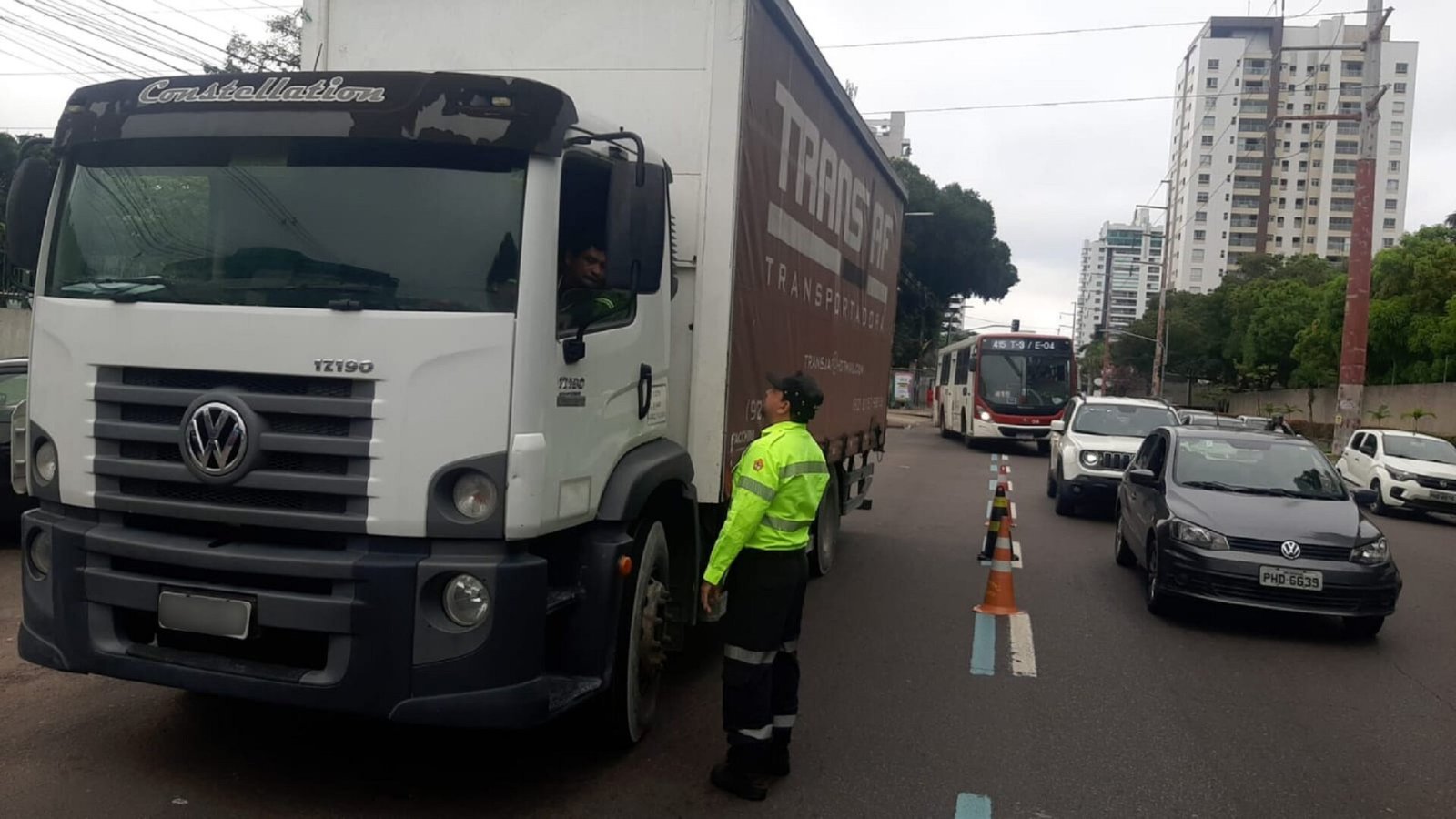 A Prefeitura de Manaus, via Instituto Municipal de Mobilidade Urbana (IMMU), desencadeou uma operação especial de fiscalização de veículos pesados, na manhã desta sexta-feira, 16/6, na avenida Mário Ypiranga Monteiro, zona Centro-Sul da cidade. A ação teve como objetivo identificar os veículos que transitam sem a Autorização Especial de Tráfego (AET) na zona máxima de restrição e notificou 12 caminhões por não portarem o documento.