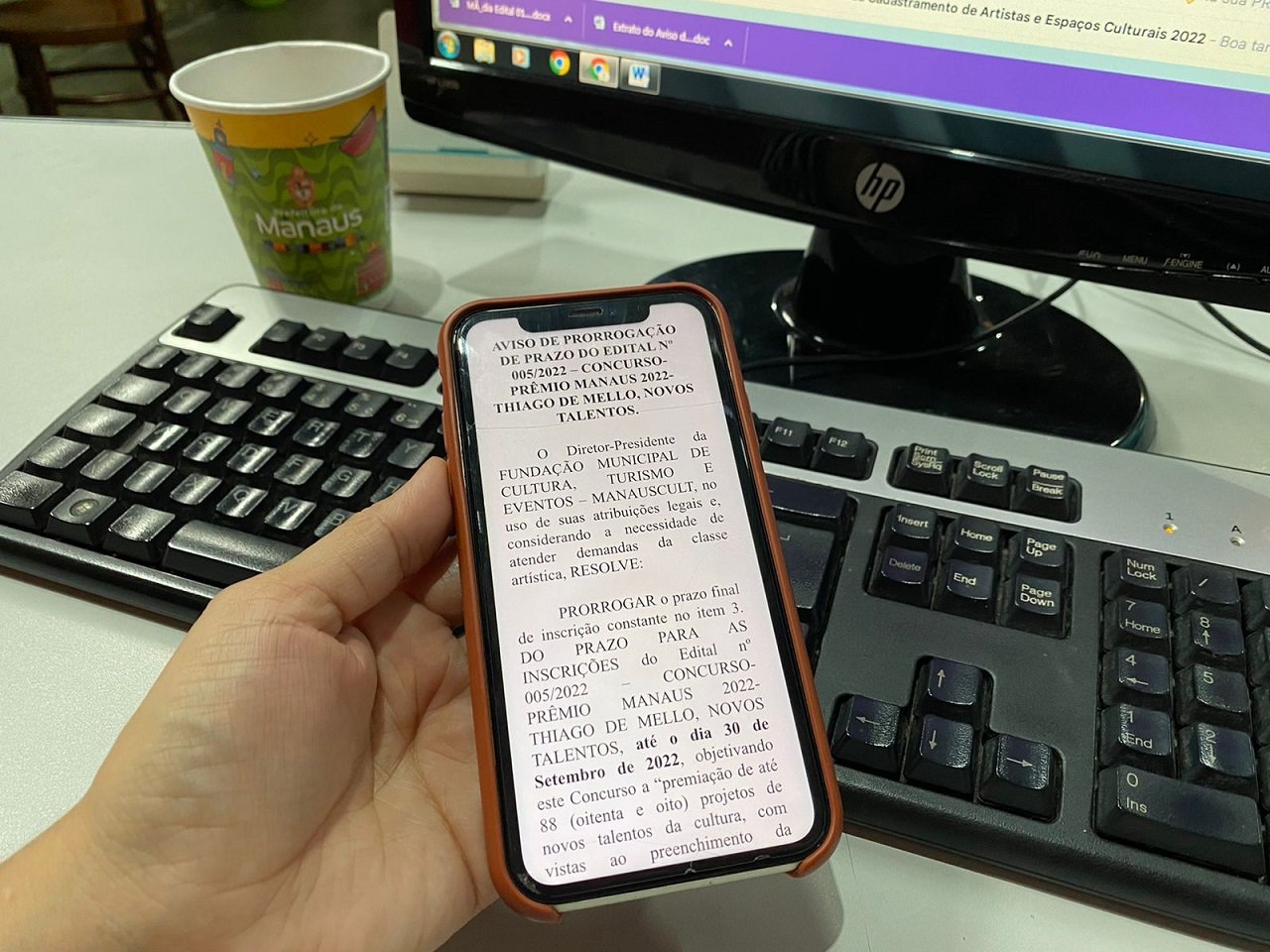 Prefeitura de Manaus, por meio da Fundação Municipal de Cultura, Turismo e Eventos (Manauscult), prorroga até o dia 30 de setembro, o prazo final de inscrição do Edital nº 005/2022 – “CONCURSO-PRÊMIO MANAUS 2022 – THIAGO DE MELLO, NOVOS TALENTOS”, destinado a artistas e profissionais da cultura, cujo desenvolvimento de sua trajetória seja emergente.