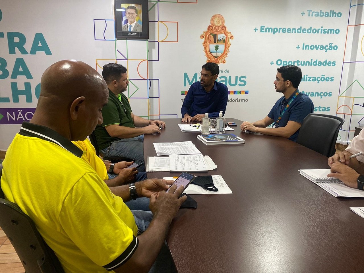 A Prefeitura de Manaus, por meio da Secretaria Municipal do Trabalho, Empreendedorismo e Inovação (Semtepi), se reuniu na manhã desta quinta-feira, 17/2, na sede do órgão, localizada no bairro Nossa Senhora das Graças, zona Centro-Sul, com representantes do Sindicato das Empresas, Microempresas e Transportadores Autônomos de Transporte Escolar no Amazonas (Sindetesc-AM) e de táxi-frete, duas novas categorias incluídas no projeto “Kit Pneus”, lançado pelo prefeito David Almeida.
