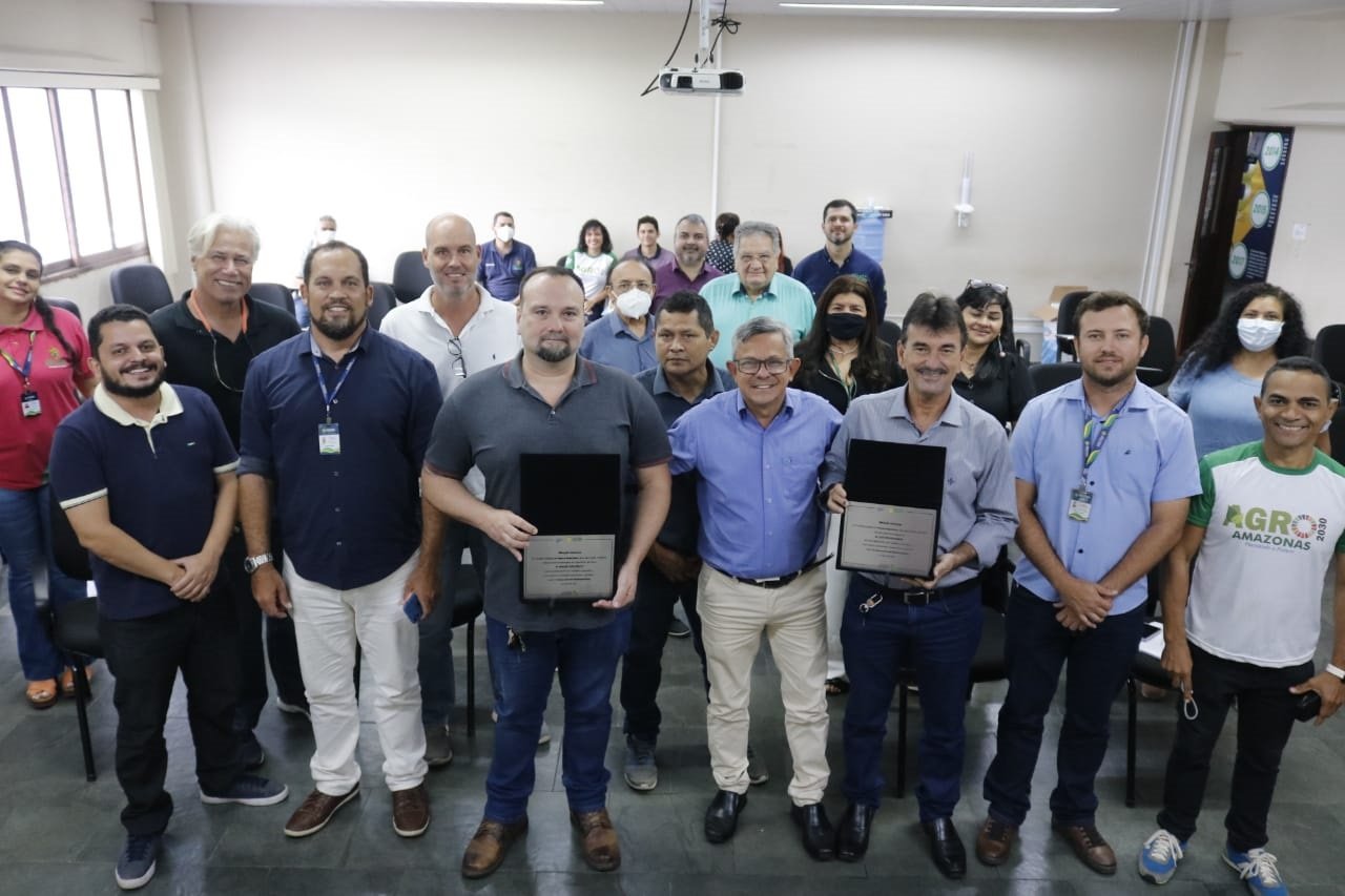 Menção honrosa – Os conselheiros Luiz Bonfá e Roger Crescêncio foram homenageados durante a reunião do Conepa, pela iniciativa de promover o consumo do pescado do Amazonas, no período mais difícil devido à doença de Haff.