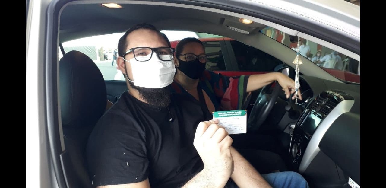“Todos vacinados”, é assim que a diretora de uma escola de inglês, Luciete Figueiredo, deseja que seus funcionários e familiares estejam. Para ajudar nesse processo, nesta quarta-feira (30/06), trouxe o professor Breno Paiva, 28, para o mutirão “Vacina Amazonas”, organizado pelo Governo do Estado e a Prefeitura de Manaus, no drive-thru da Arena da Amazônia.