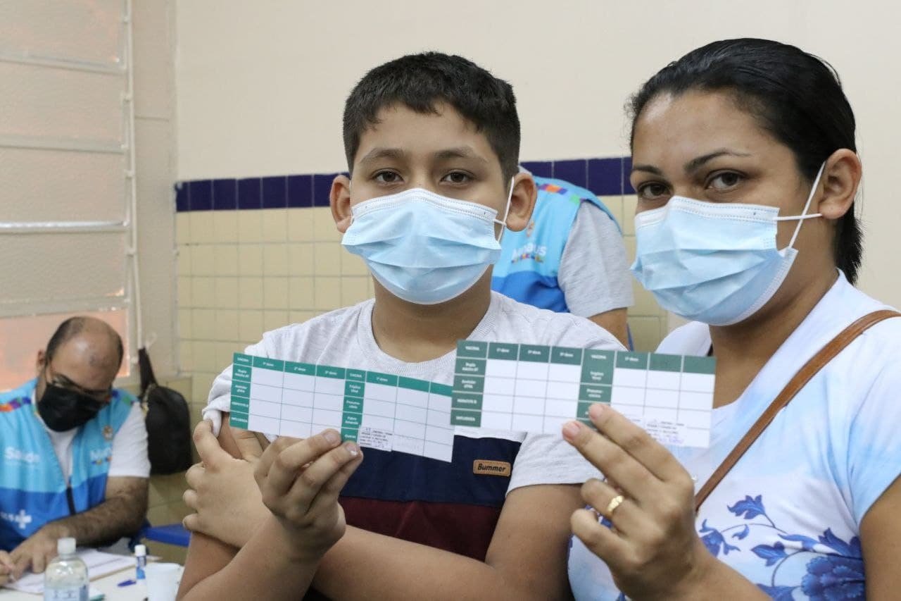 O mutirão Vacina Amazonas, que chega à 20ª edição nesta sexta-feira (17/09) e no sábado (18/09), é voltado para intensificar a vacinação da 1ª, 2ª doses e dose de reforço dos imunizantes contra a Covid-19. Isto proporcionou que mãe e filho tomassem a vacina no mesmo dia e local. A manicure Caroline de Lima, de 34 anos, tomou a 2ª dose na Escola Estadual de Tempo Integral Francisca Botinelly Cunha e Silva, ao lado do filho, Jhulyendrew Cerdeira, 12, que tem comorbidade e estuda na unidade escolar, localizada na avenida Coronel Pedro Teixeira, Dom Pedro, zona centro-oeste da capital.