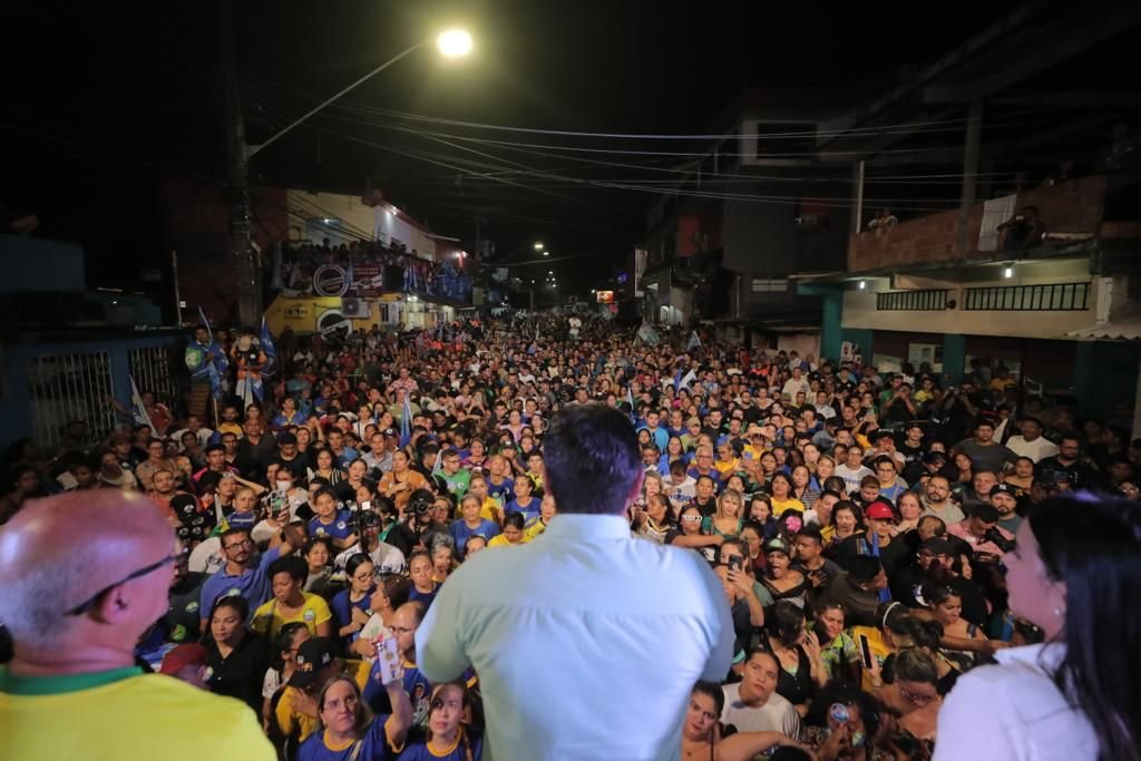 A seis dias das eleições, o governador Wilson Lima, candidato à reeleição pelo União Brasil, reuniu cerca de 10 mil pessoas, hoje (26/09), em comício no bairro Novo Aleixo, zona norte de Manaus, e destacou que está chegando a hora de derrotar de vez a velha política.