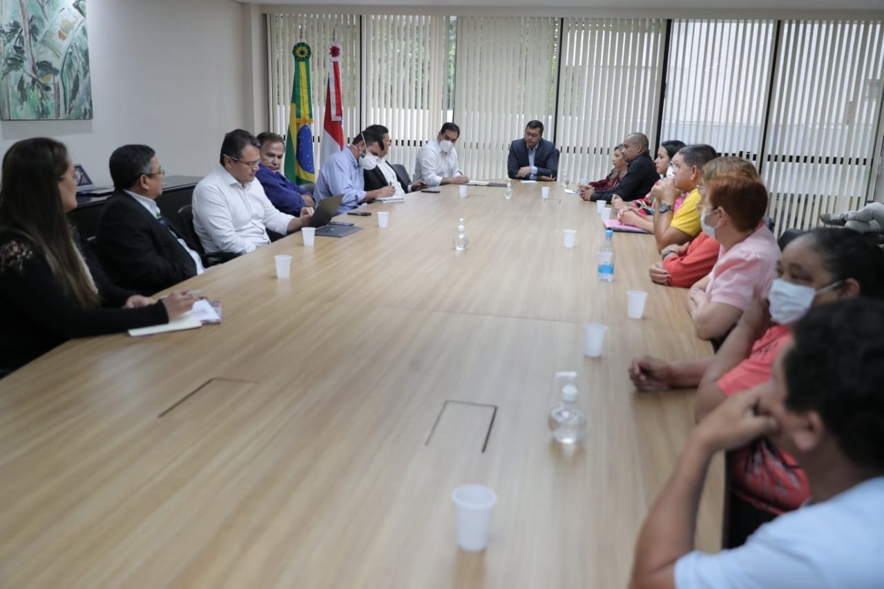 As medidas foram apresentadas pelo governador para representantes de 10 sindicatos de profissionais da categoria, durante reunião na sede do Governo do Amazonas, bairro Compensa, zona oeste de Manaus. A reunião contou a presença do secretário-chefe da Casa Civil, Flávio Antony, e dos secretários de Estado de Administração e Gestão, Fabrício Barbosa; Saúde, Anoar Samad; e Governo, Sérgio Litaiff Filho.