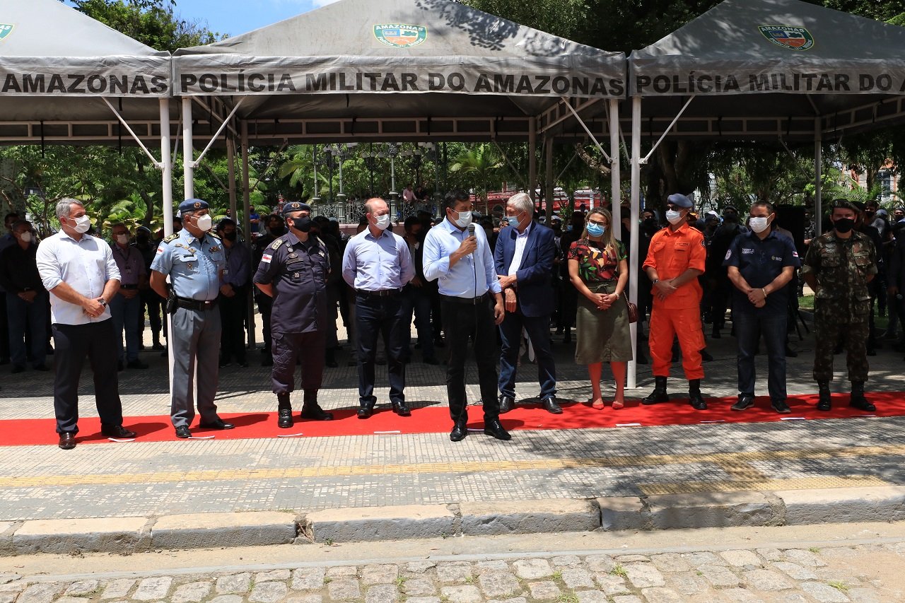 O governador Wilson Lima lançou, nesta segunda-feira (22/11), na praça Heliodoro Balbi, no Centro, zona sul de Manaus, a operação Natal da Esperança, que vai reforçar o policiamento ostensivo nas ruas da capital e intensificar a atuação preventiva da Polícia Militar do Amazonas (PMAM) em todo o estado durante o período de final e início de ano.